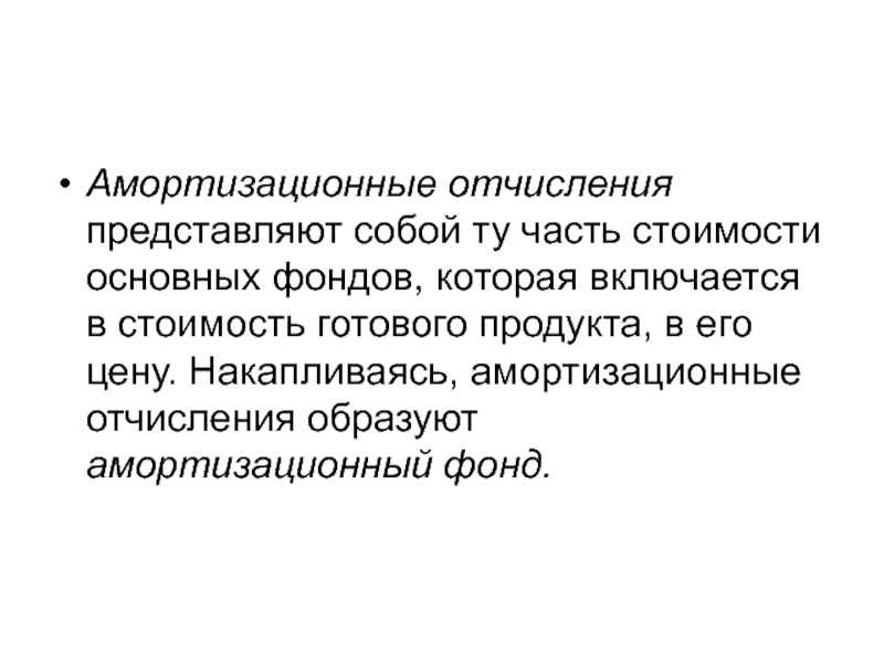 Слайд 49Амортизационные отчисления представляют собой ту часть стоимости основных фондов, которая