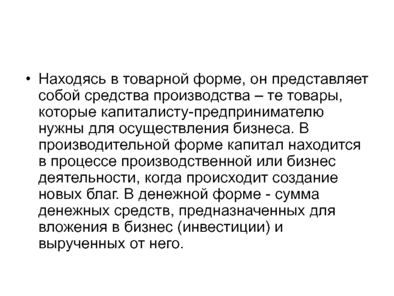 Слайд 13Находясь в товарной форме, он представляет собой средства производства –