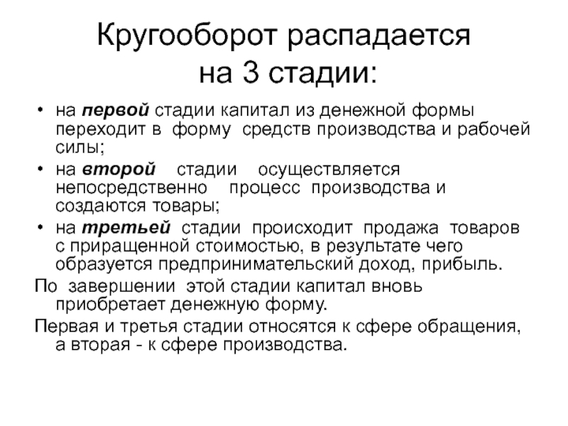 Первая и третья стадии относятся к сфере обращения, а вторая - к сфере производства.