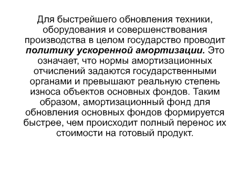 государство проводит политику ускоренной амортизации. Это означает, что нормы амортизационных