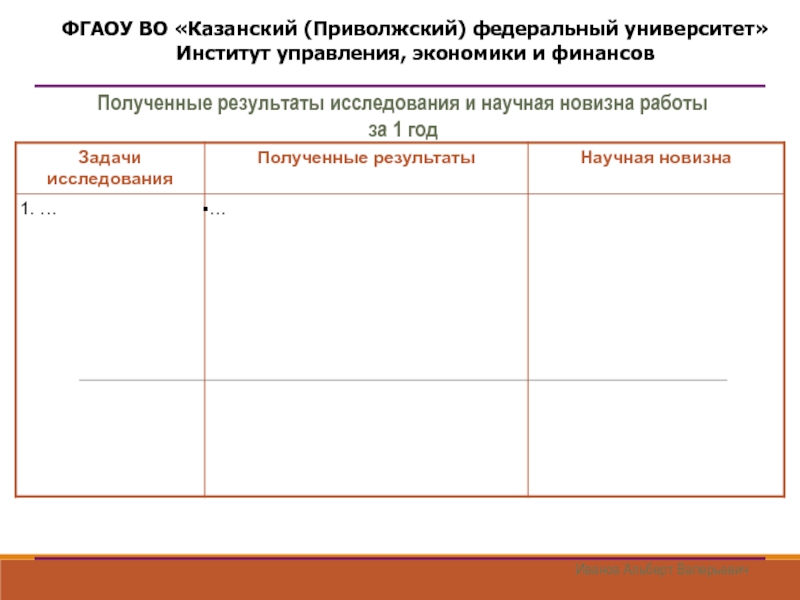 Иванов Альберт ВалерьевичПолученные результаты исследования и научная новизна работы      за 1 год