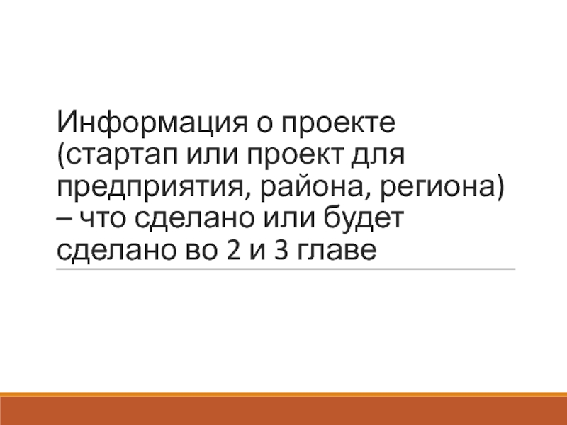 Слайд 7Информация о проекте (стартап или проект для предприятия, района, региона)