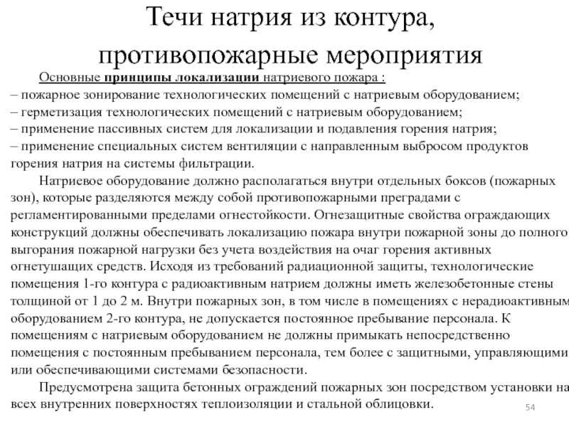 Слайд 54 Основные принципы локализации натриевого пожара :