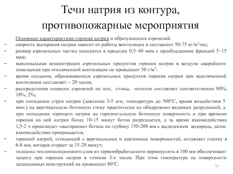 Слайд 51Основные характеристики горения натрия и образующихся аэрозолей: