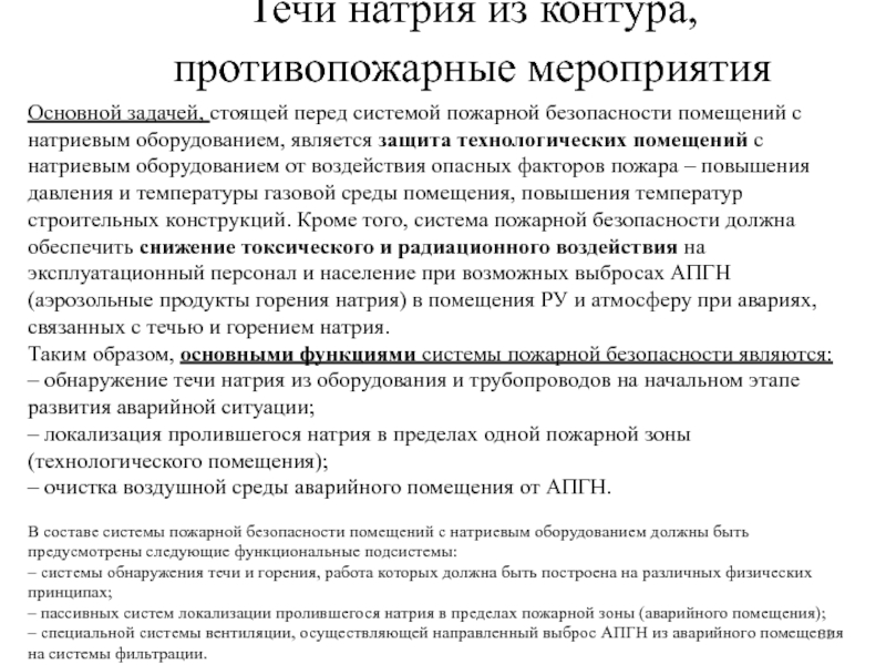 – локализация пролившегося натрия в пределах одной пожарной зоны (технологического помещения);