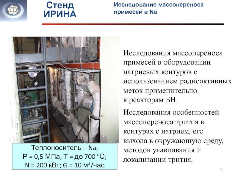 1998 г. - завершен комплекс исследований по массопереносу трития в натриевых контурах ЯЭУ;