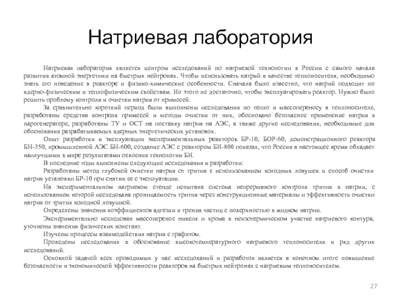 Слайд 3Основные положения технологии натрия как теплоносителя реакторов на быстрых нейтронах