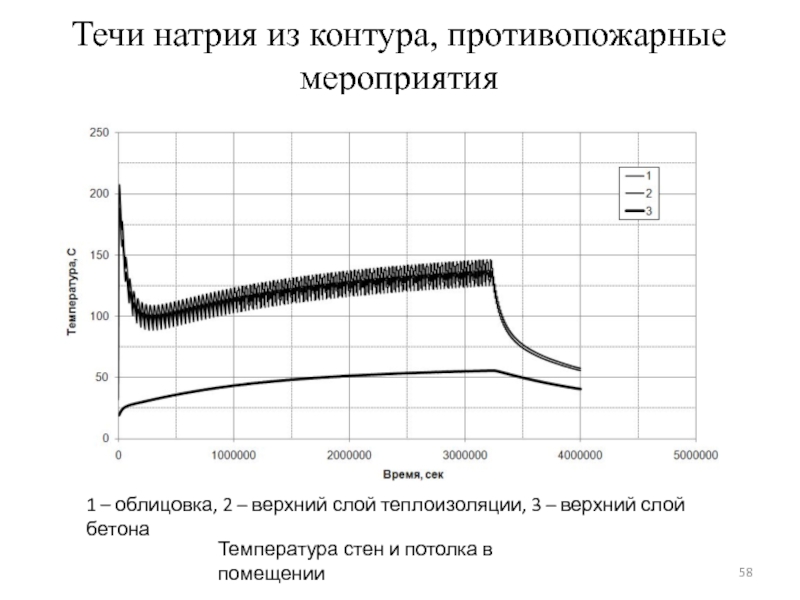 Слайд 58Течи натрия из контура, противопожарные мероприятия