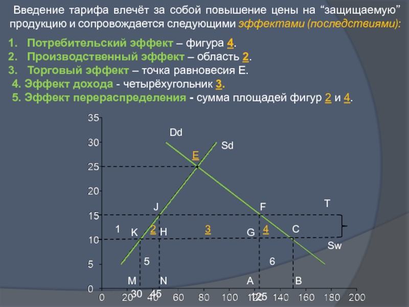 Разная сила ограничительного воздействия, которое тариф и квота оказывают на объем импорта в условиях изменения спроса или предложения товара.