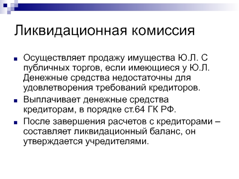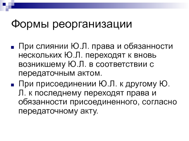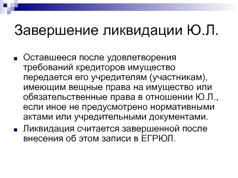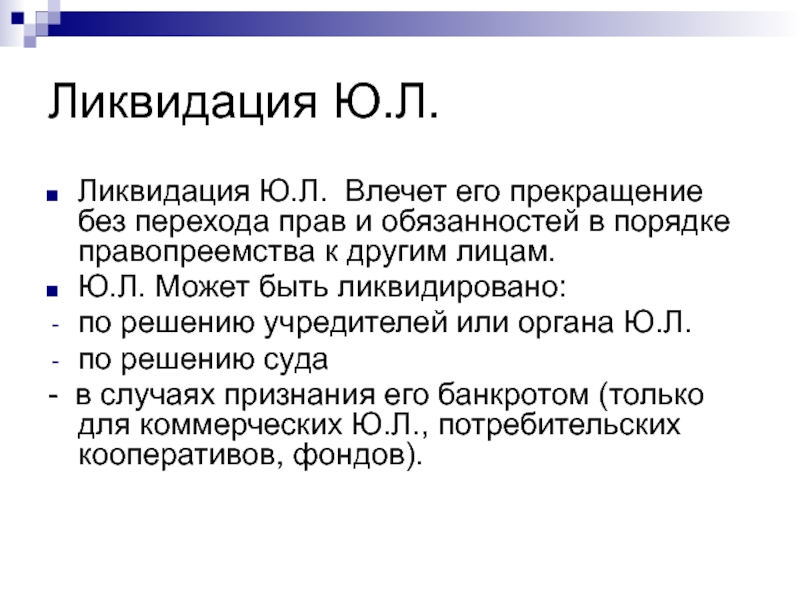 Ликвидация Ю.Л. Влечет его прекращение без перехода прав и