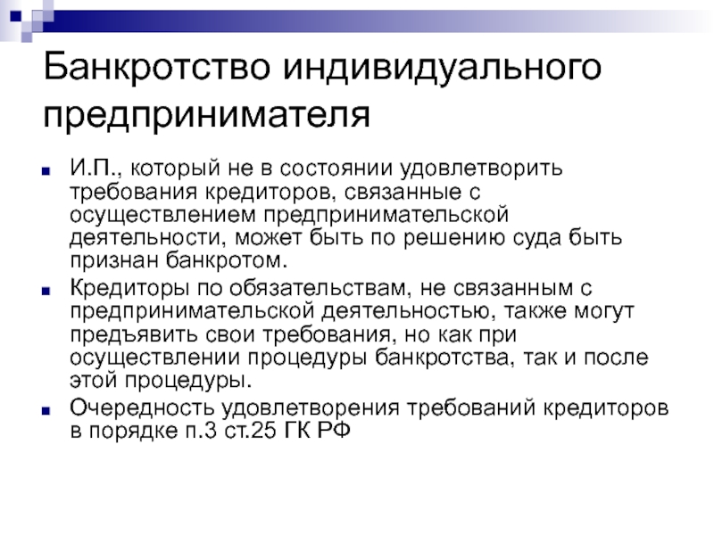 Очередность удовлетворения требований кредиторов в порядке п.3 ст.25 ГК РФ