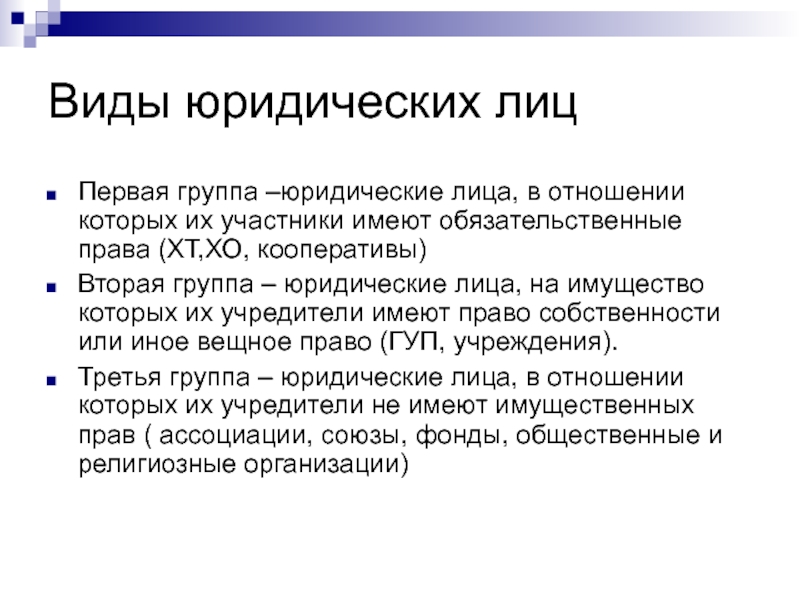 Третья группа – юридические лица, в отношении которых их учредители не имеют имущественных прав ( ассоциации, союзы, фонды, общественные и религиозные организации)