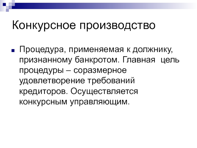 Процедура, применяемая к должнику, признанному банкротом. Главная цель процедуры