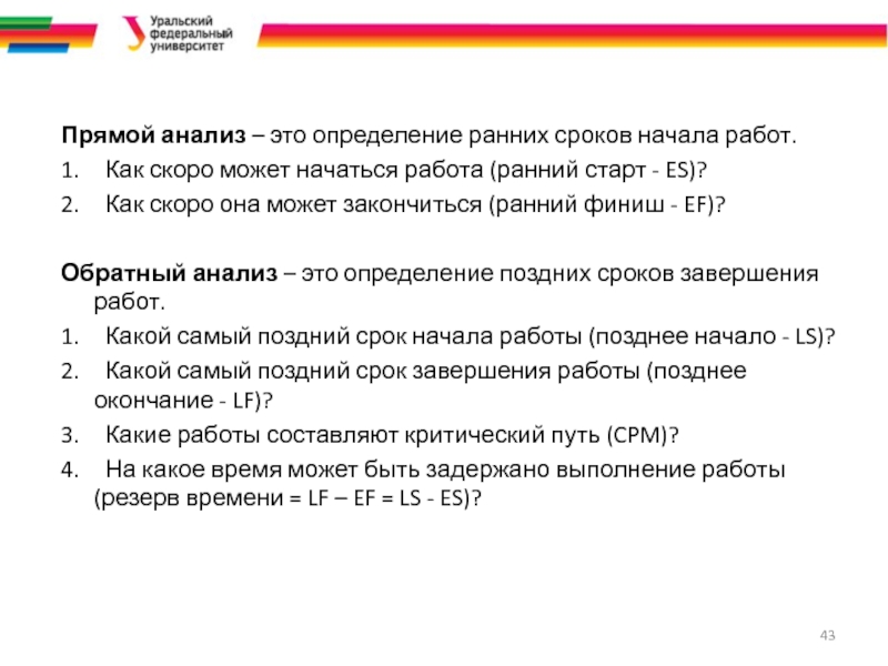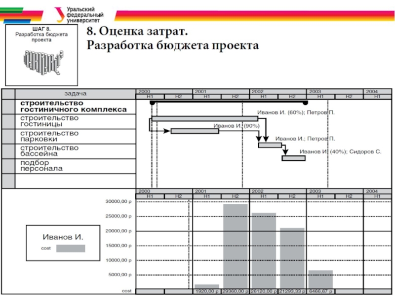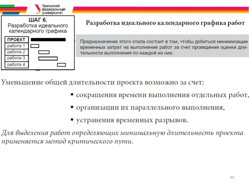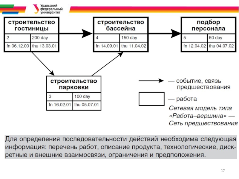 этой части состоит в необходимости учесть все работы, без которых выполнение проекта невозможно и расположить их в наиболее выгодной оптимальной последовательности, которая позволит реализовать проект с наименьшими затратами.