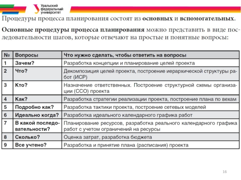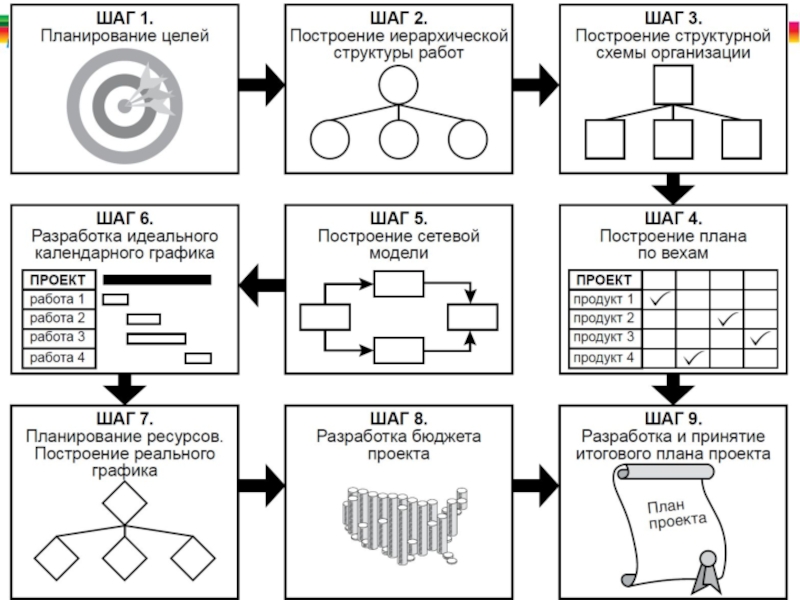 Приступая к работе над Содержанием проекта, вам необходимо учесть ряд взаимосвязанных действий, к которым относятся: