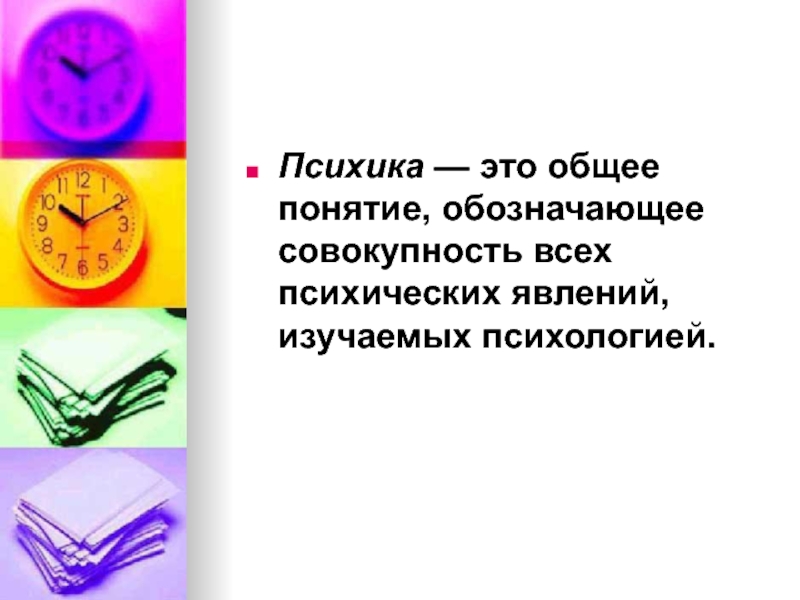 Слайд 4Психика — это общее понятие, обозначающее совокупность всех психических явлений,