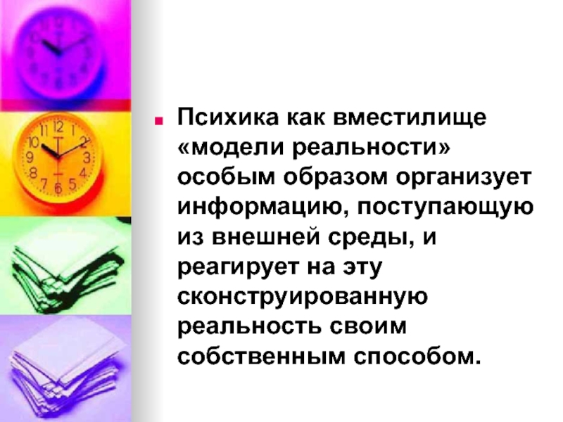 Слайд 13Психика как вместилище «модели реальности» особым образом организует информацию, поступающую