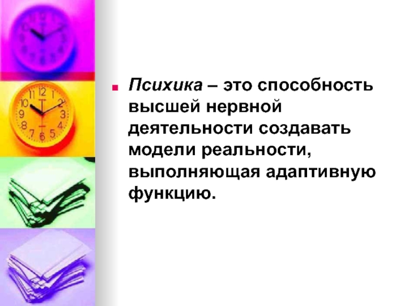 Слайд 10Психика – это способность высшей нервной деятельности создавать модели реальности,