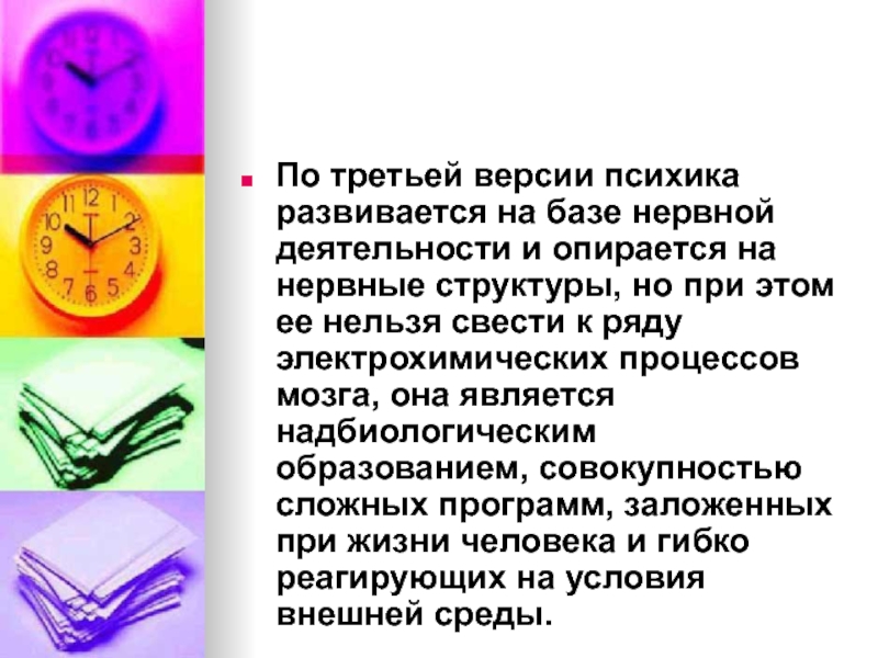 Слайд 9По третьей версии психика развивается на базе нервной деятельности и