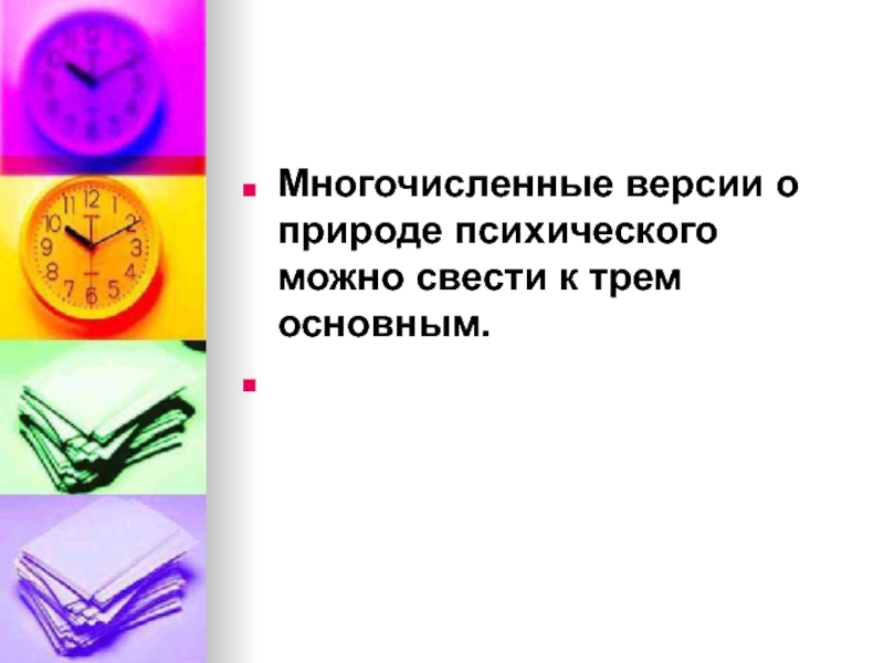 Слайд 5Многочисленные версии о природе психического можно свести к трем основным.