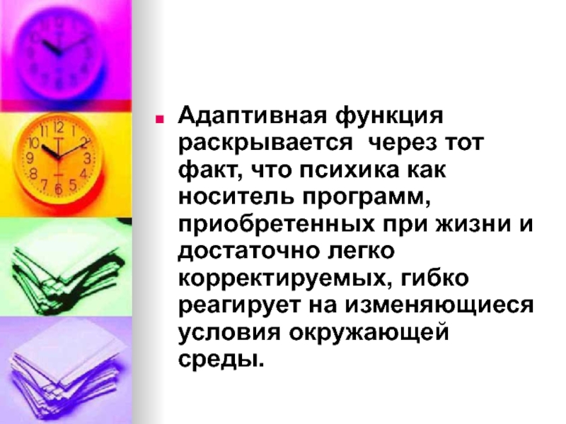 Слайд 18Адаптивная функция раскрывается через тот факт, что психика как носитель