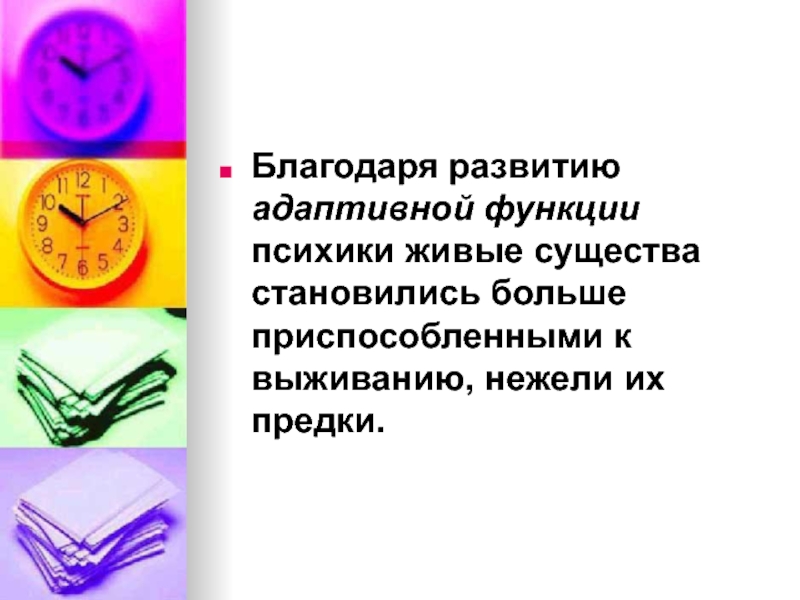 Благодаря развитию адаптивной функции психики живые существа становились больше приспособленными к выживанию, нежели их предки.