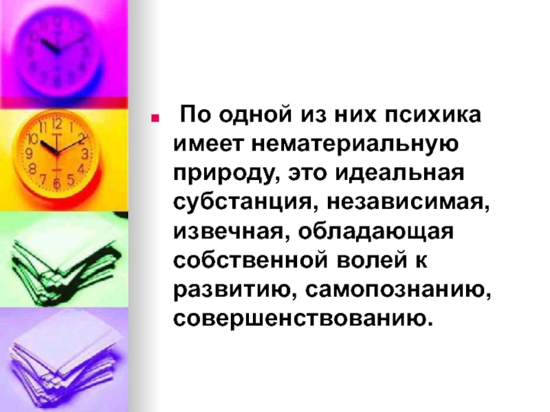 Слайд 6 По одной из них психика имеет нематериальную природу, это