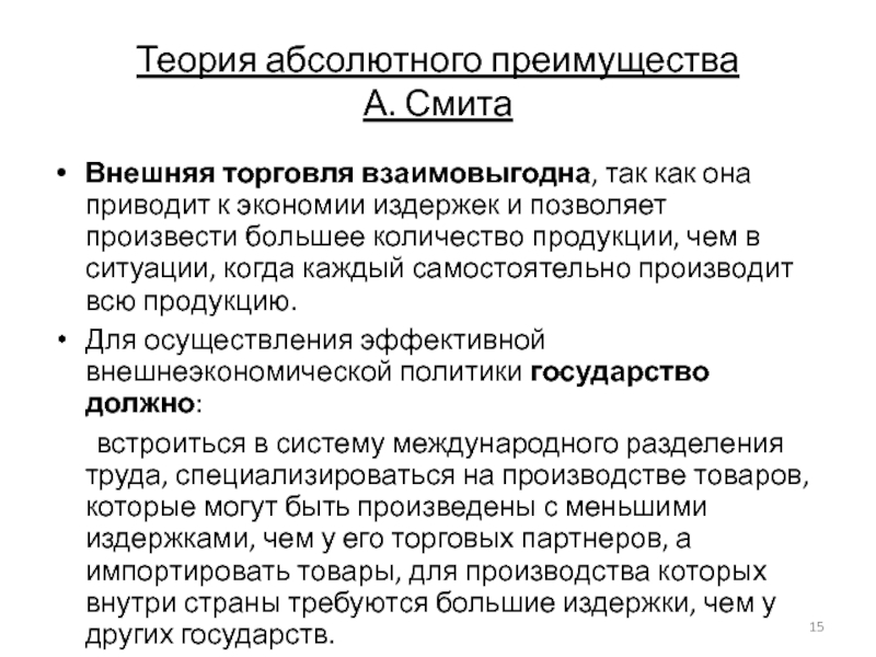 встроиться в систему международного разделения труда, специализироваться на производстве товаров, которые могут быть произведены с меньшими издержками, чем у его торговых партнеров, а импортировать товары, для производства которых внутри страны требуются большие издержки, чем у других государств.