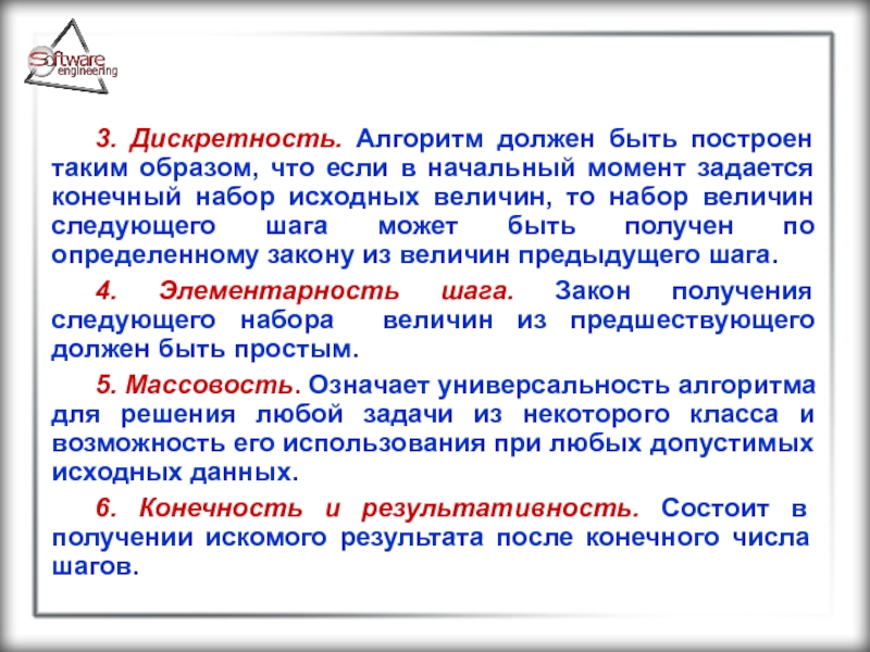 Слайд 7 3. Дискретность. Алгоритм должен быть построен таким образом, что если