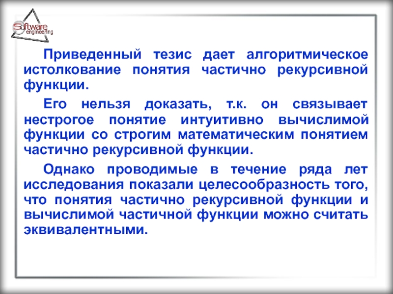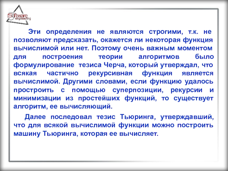 Слайд 19 2. Связано с уточнением понятия эффективно вычислимой функции. Результатом исследований
