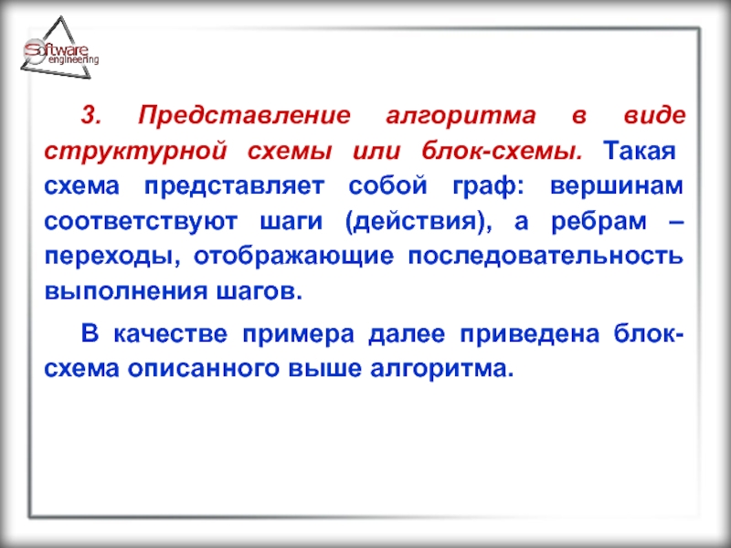 Слайд 14 3. Представление алгоритма в виде структурной схемы или блок-схемы. Такая