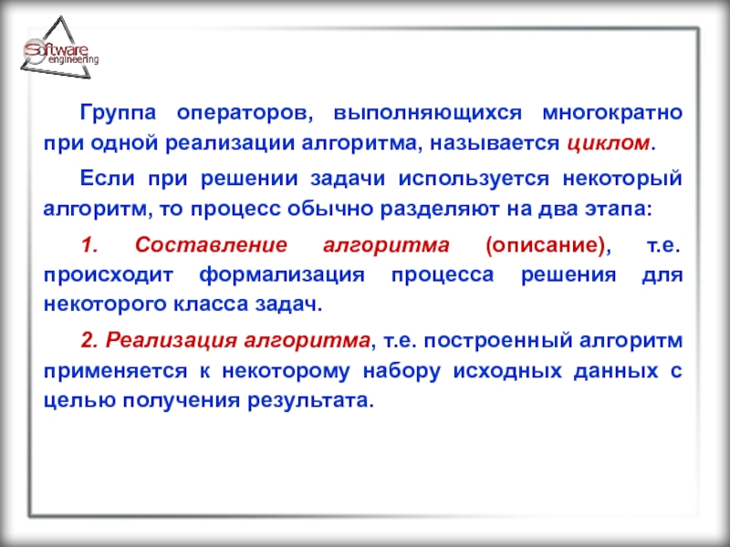 Слайд 10 Группа операторов, выполняющихся многократно при одной реализации алгоритма, называется циклом.