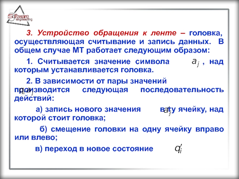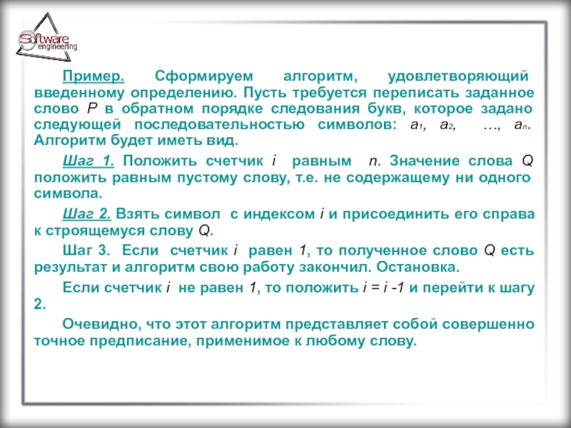 1. Связано с машинной математикой. В нем сущность понятия алгоритма