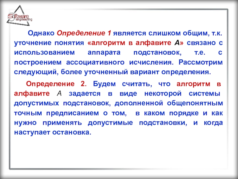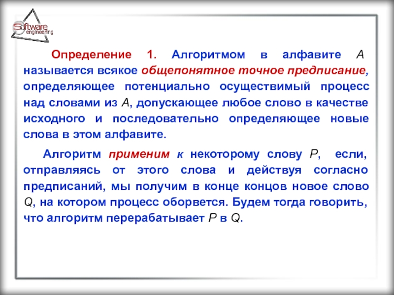 Слайд 26 Понятие алгоритма в этом определении берется в интуитивном смысле, поэтому