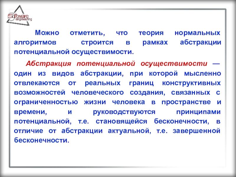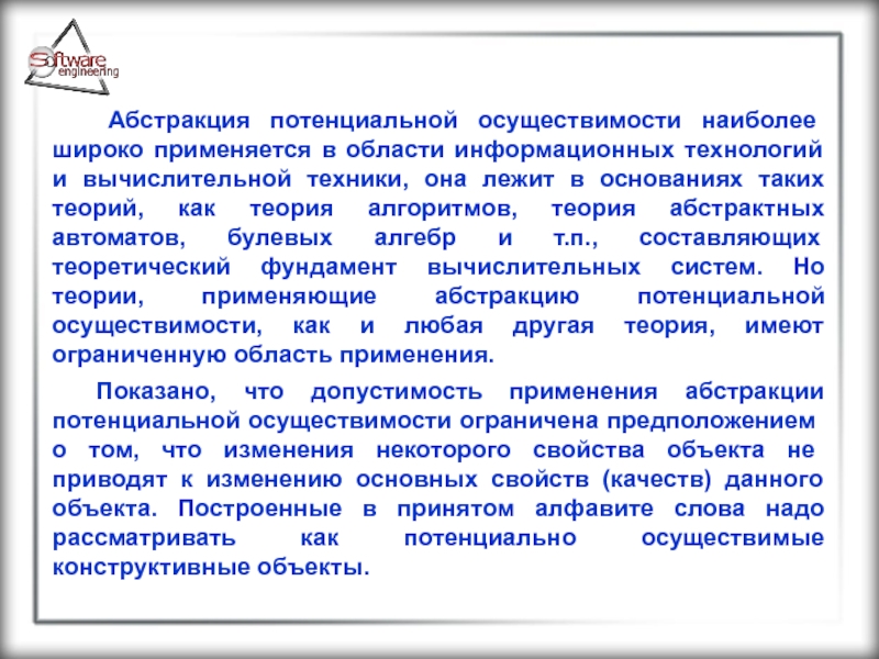 Слайд 103 Абстракция потенциальной осуществимости наиболее широко применяется в области информационных