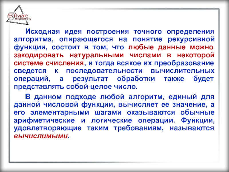 Слайд 22 Исходная идея построения точного определения алгоритма, опирающегося на понятие рекурсивной