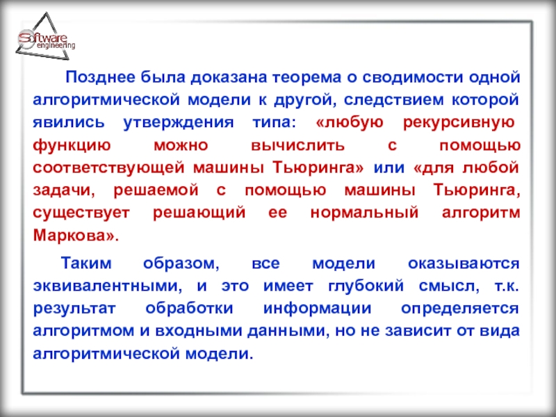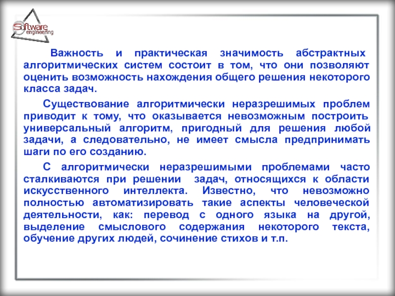 Слайд 120 Важность и практическая значимость абстрактных алгоритмических систем состоит в