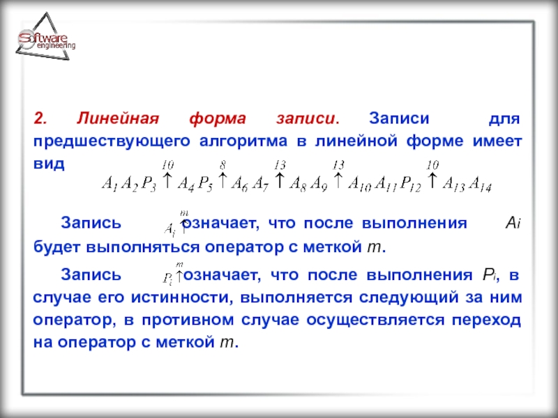 2. Линейная форма записи. Запиcи для предшествующего алгоритма в линейной