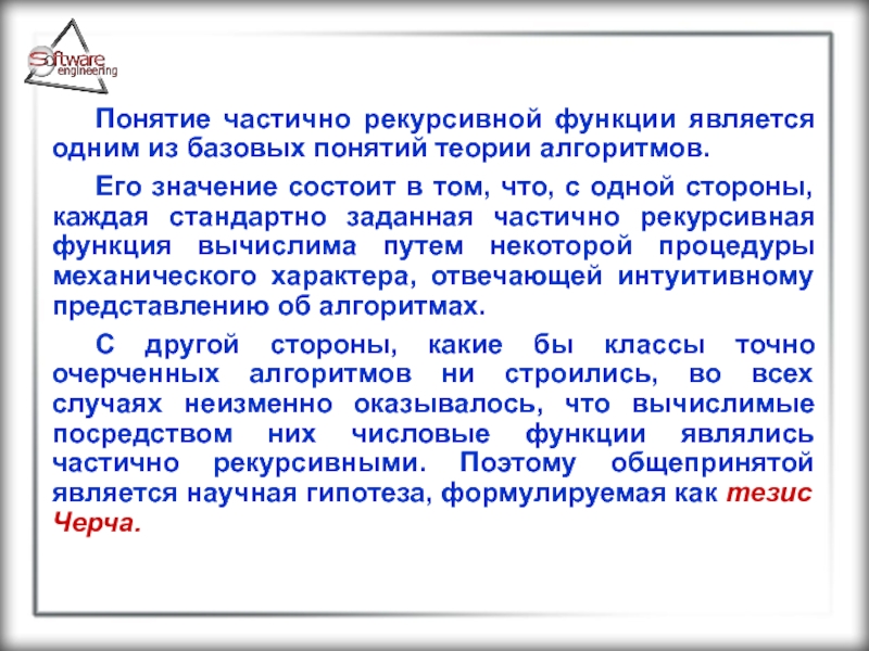 было выделение особого класса частично рекурсивных функций, которые имеют