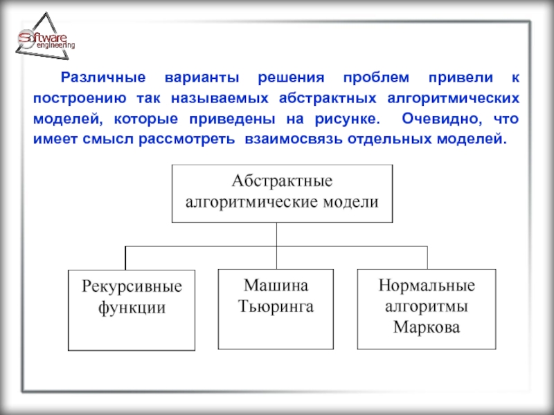 Слайд 107 Различные варианты решения проблем привели к построению так называемых абстрактных