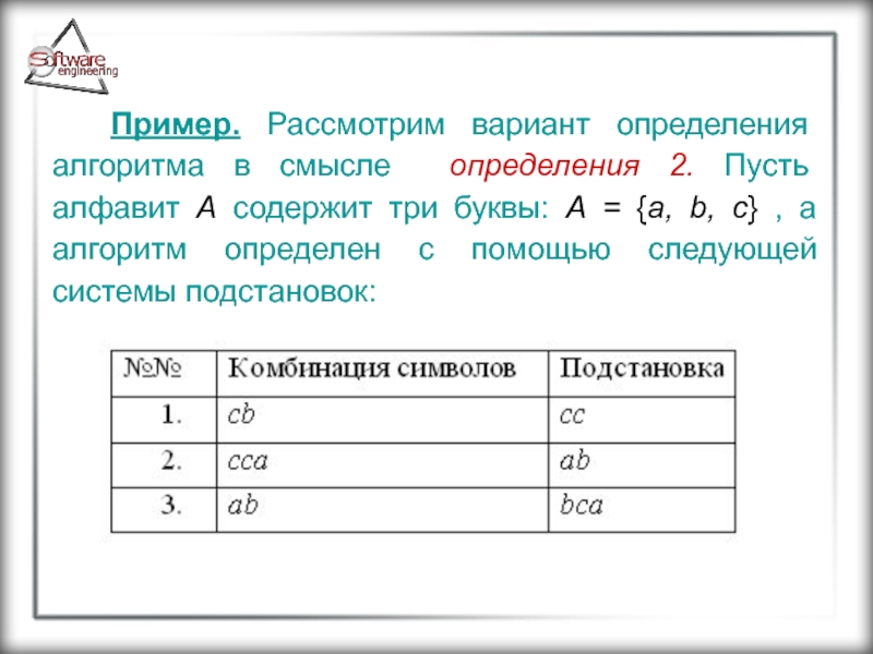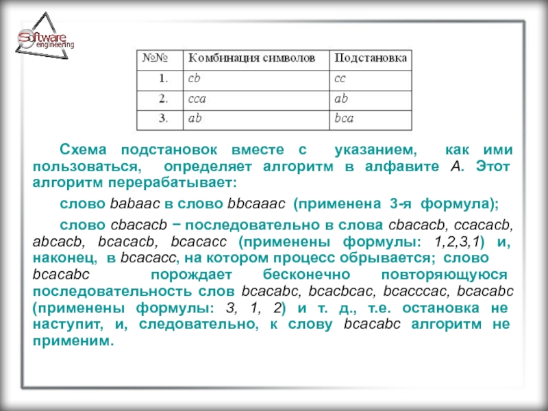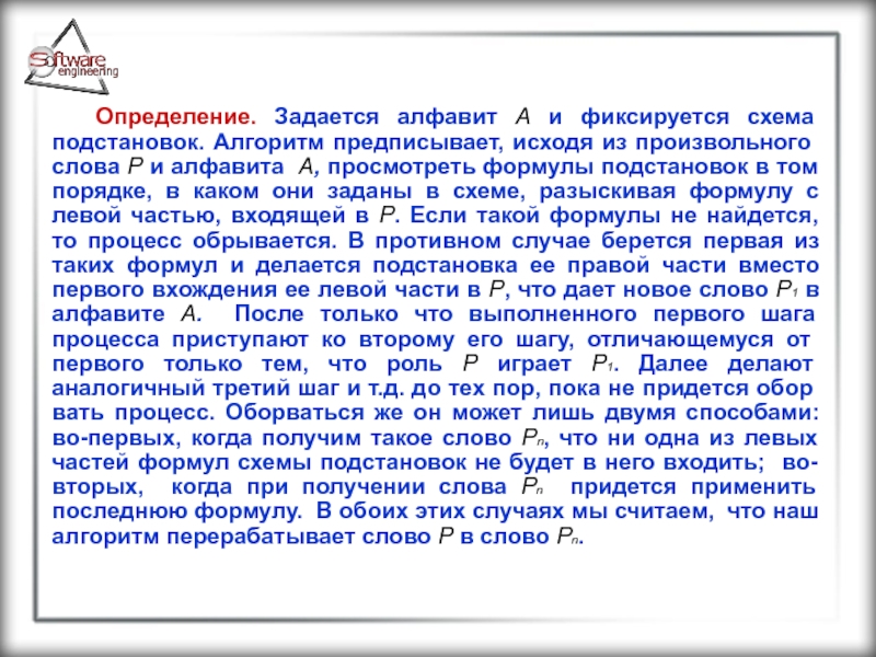 Слайд 97 Определение. Задается алфавит А и фиксируется схема подстановок. Алгоритм предписывает,