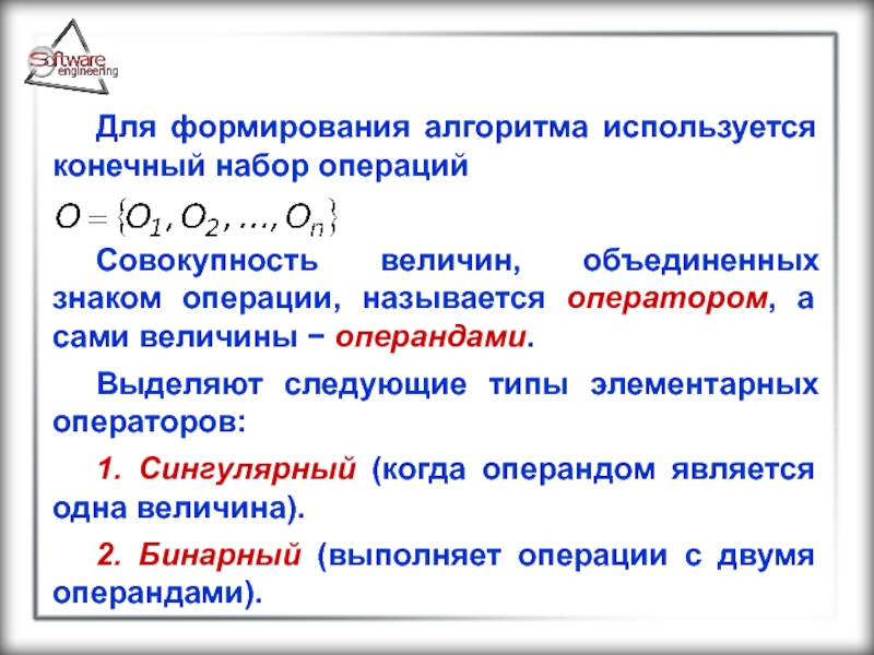 Слайд 8 Для формирования алгоритма используется конечный набор операций