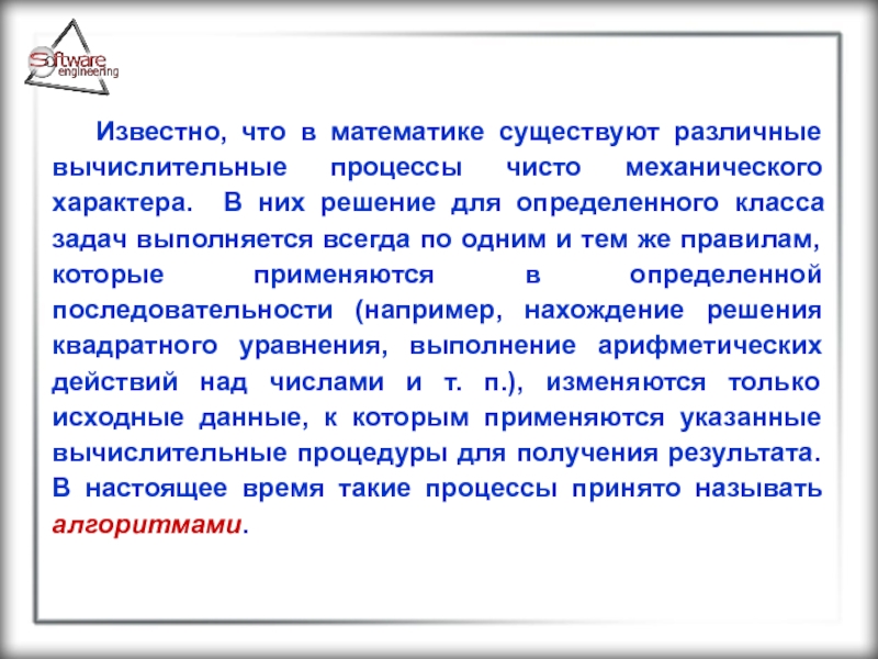 Слайд 3 Известно, что в математике существуют различные вычислительные процессы чисто механического