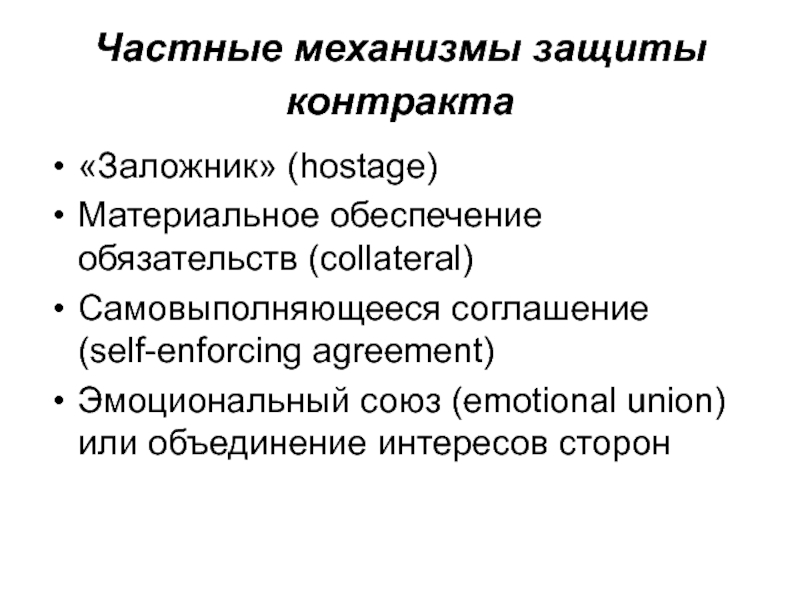 Слайд 14Частные механизмы защиты контракта