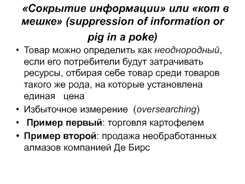 Слайд 5 «Сокрытие информации» или «кот в мешке» (suppression of information