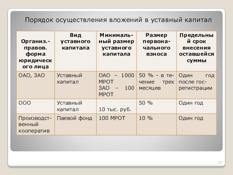 Слайд 27Порядок осуществления вложений в уставный капитал