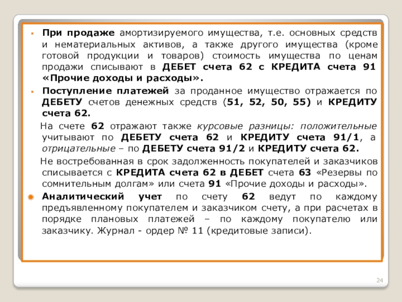 Слайд 24При продаже амортизируемого имущества, т.е. основных средств и нематериальных активов,