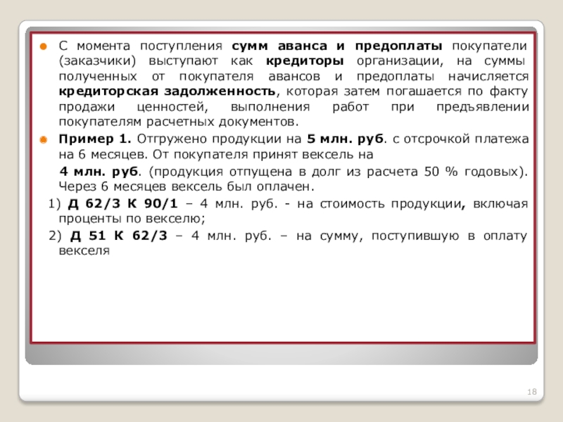 Слайд 18С момента поступления сумм аванса и предоплаты покупатели (заказчики) выступают