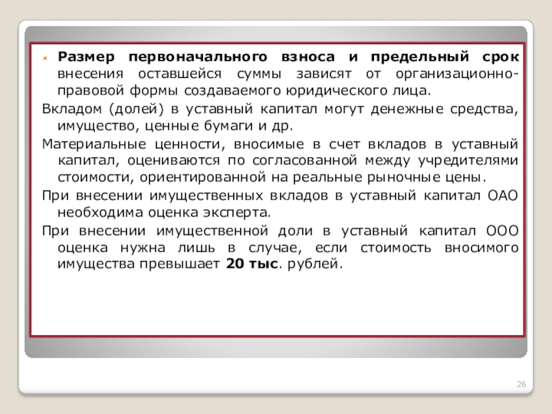 Слайд 26Размер первоначального взноса и предельный срок внесения оставшейся суммы зависят