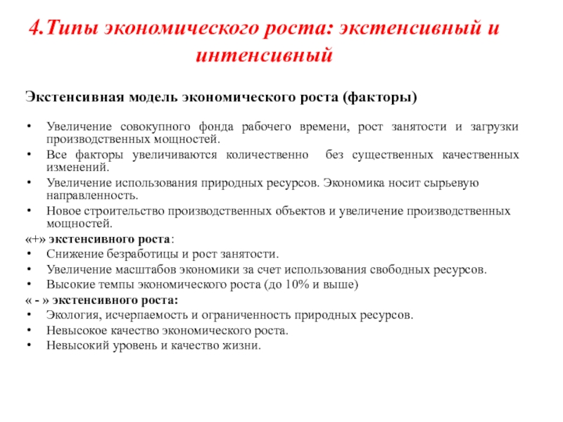 Слайд 244.Типы экономического роста: экстенсивный и интенсивный